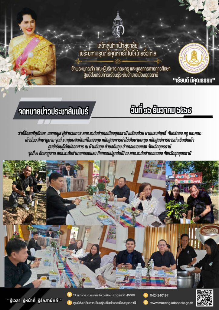 วันอังคารที่ 16 ธันวาคม 2568  ร่วมศึกษาดูงานของ สกร.ประจำจังหวัดอุดรธานี ณ จุดศึกษาดูงานบ้านทับกุง และ สกร.ระดับอำเภอหนองแสง ตำบลทับกุง อำเภอหนองแสง จังหวัดอุดรธานี