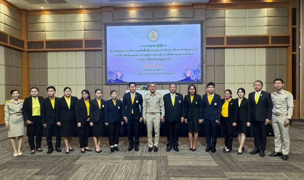 วันที่ 24 มีนาคม 2568 ว่าที่ ร.ต.ศุภักษร พรหมมูล ผอ.สกร.ระดับอำเภอเมืองอุดรธานี พร้อมด้วย นายนรงฤทธิ์ จันกอง ครู เข้าร่วมการประชุมเชิงปฏิบัติการณ์ จัดทำข้อเสนอการบริหารงานเชิงพื้นที่แบบบูรณาการด้านการศึกษาจังหวัดอุดรธานี ภายใต้บันทึกข้อตกลงความร่วมมือการยกระดับประสิทธิภาพและประสิทธิผลการจัดการศึกษาจังหวัดอุดรธานี ณ ห้องสยามมนต์ตรา โรงแรมสยามแกรนด์ อำเภอเมือง จังหวัดอุดรธานี