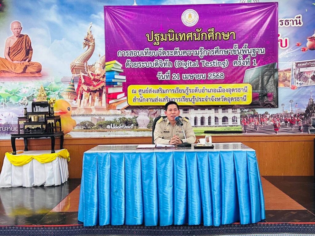 วันที่ 21 เมษายน 2568 สกร.สระดับอำเภอเมืองอุดรธานีจัดปฐมนิเทศนักศึกษา การสอบเทียบระดับความรู้การศึกษาขั้นพื้นฐานด้วยระบบดิจิตอล (Digital Testing) ครั้งที่ 1 โดยมี นายชินกร คะอังกุ ผอ.สกร.ประจำจังหวัดอุดรธานีเป็นประธาน