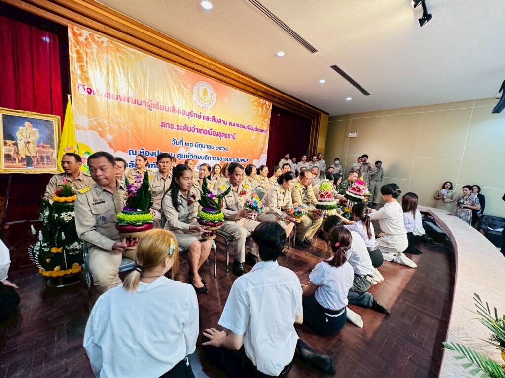 วันที่ 26 มิถุนายน 2568 สกร.ระดับอำเภอเมืองอุดรธานี จัดโครงการพัฒนาผู้เรียนเพื่ออนุรักษ์ และสืบสานขนบธรรมเนียมประเพณี สกร.ระดับอำเภอเมืองอุดรธานีโดยมีว่าที่ ร.ต.ศุภักษร พรหมมูล ผอ.สกร.ระดับอำเภอเมืองอุดรธานี เป็นประธานในพิธีและนายนรงฤทธิ์ จันทร์กอง ครู เป็นผู้กล่าวรายงาน พร้อมด้วย ขาราชการ และบุคลากรครู และนักศึกษาเขาร่วม ณ ห้องประชุม ศูนย์วิทยบริการและชุมชนสัมพันธ์ มหาวิทยาลัยสุโขทัยธรรมาธิรารอำเภอเมืองอุดรธานี จังหวัดอุดรธานี