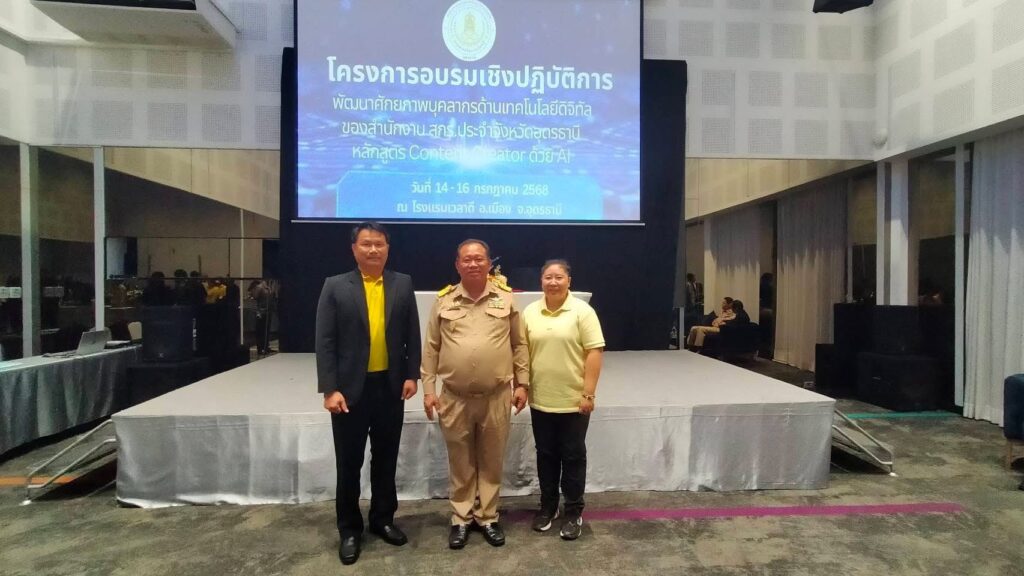 วันที่ 14 -16 กรกฎาคม 2568ครูศูนย์การเรียนรู้ ได้รับมอบหมายจาก ว่าที่ ร.ต.ศุภักษร พรหมมูล ผู้อำนวยการ สกร.ระดับอำเภอเมืองอุดรธานีให้เข้ารับการอบรม เชิงปฏิบัติการ พัฒนาศักยภาพบุคลากรด้านเทคโนโลยีดิจิทัลสำนักงานสกร.ประจำจังหวัดอุดรธานี หลักสูตร Content Creatorด้วยAI ระหว่างวันที่ 14 -16 กรกฎาคม 2568 ณ โรงแรมเวลาดี อ.เมือง จ.อุดรธานี