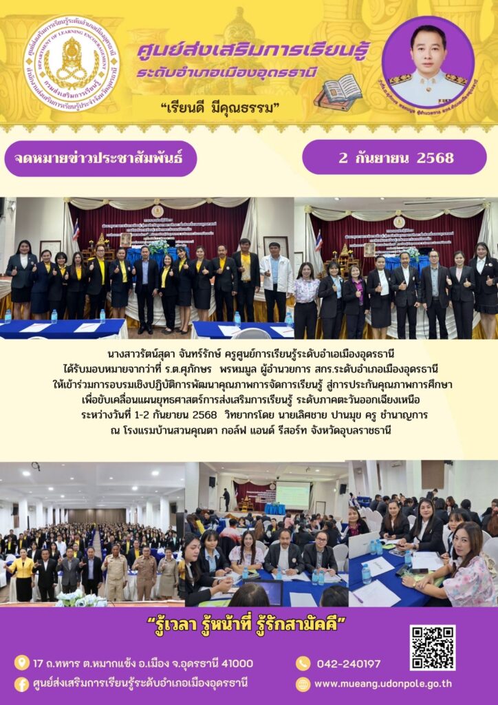 ให้เข้าร่วมการอบรมเชิงปฏิบัติการพัฒนาคุณภาพการจัดการเรียนรู้ สู่การประกันคุณภาพการศึกษา