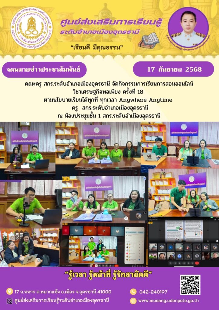 จัดกิจกรรมการเรียนการสอนออนไลน์วิชาเศรษฐกิจพอเพียง ครั้งที่ 18ตามนโยบายเรียนได้ทุกที่ ทุกเวลา Anywhere Anytime