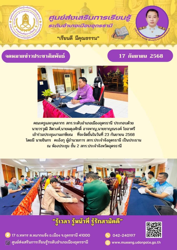 เข้าร่วมประชุมงานเกษียณ ที่จะจัดขึ้นในวันที่ 23 กันยายน 2568โดยมี นายชินกร คะอังกุ ผู้อำนวยการ สกร.ประจำจังอุดรธานี เป็นประธาน