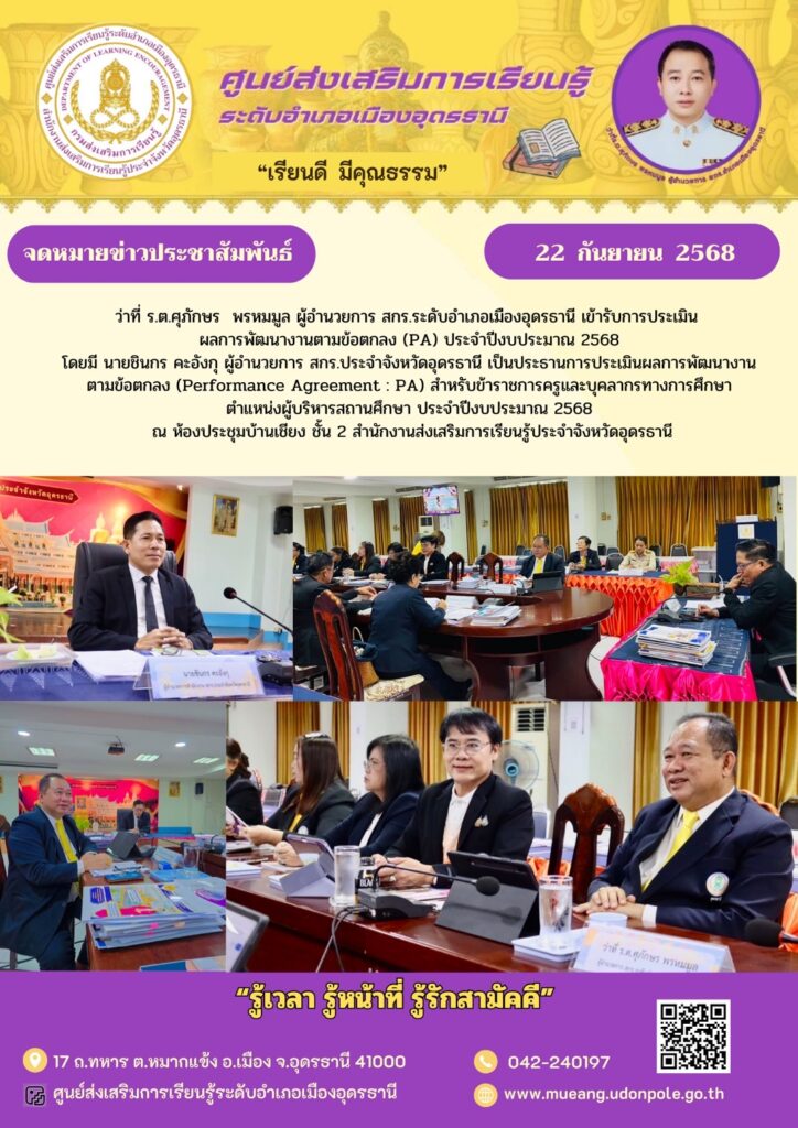 ว่าที่ ร.ต.ศุภักษร พรหมมูล ผู้อำนวยการ สกร.ระดับอำเภอเมืองอุดรธานี เข้ารับการประเมินผลการพัฒนางานตามข้อตกลง (PA) ประจำปีงบประมาณ 2568
