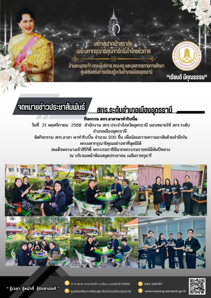 ประมวลภาพกิจกรรมของ สกร.ระดับอำเภอเมืองอุดรธานี ในวันที่ 20 พฤศจิกายน 2568By admin4101 / 23 พฤศจิกายน 2025