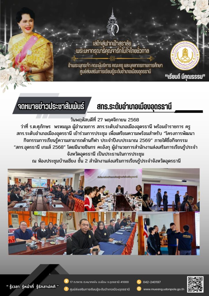 ข่าวสารกิจกรรม สกร.ระดับอำเภอเมืองอุดรธานี ประจำวันที่ 27 พฤศจิกายน 2568